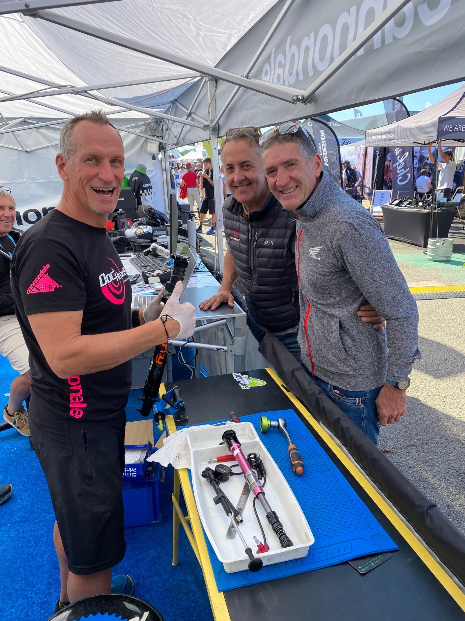 Depuis 25 ans bientôt, nous déplacons l’atelier Doc Headshok jusqu’à la Base Nature de Fréjus, pour le salon du Roc d’azur, le plus grand rendez-vous d’Europe pour tous les cyclistes passionnés.