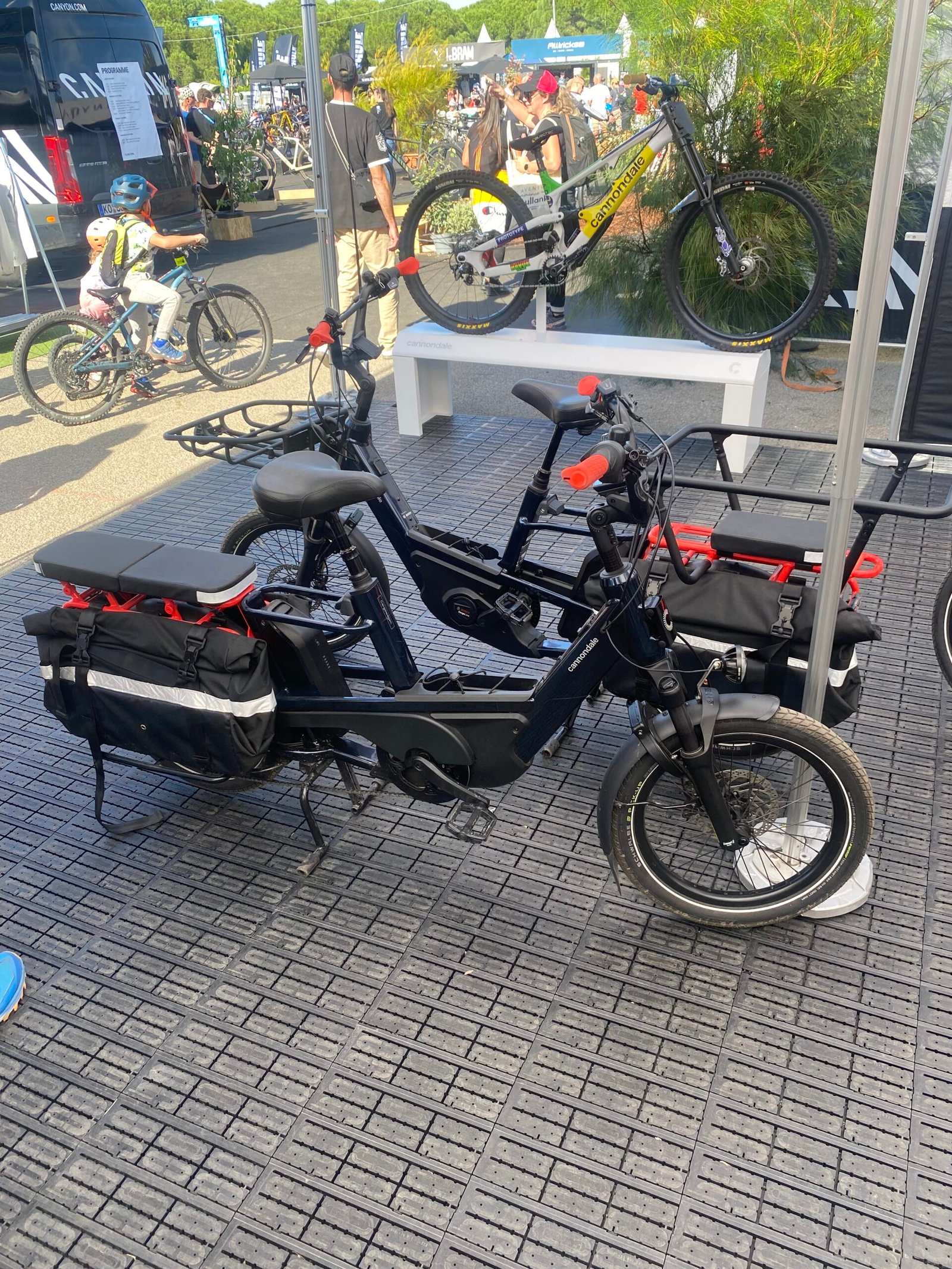 Le stand Cannondale était présent à nos cotés avec une exposition des fourches Lefty, des tests vélos, l’exposition de leurs derniers modèles les plus hauts de gamme, ainsi que leur gamme de vélos cargo.